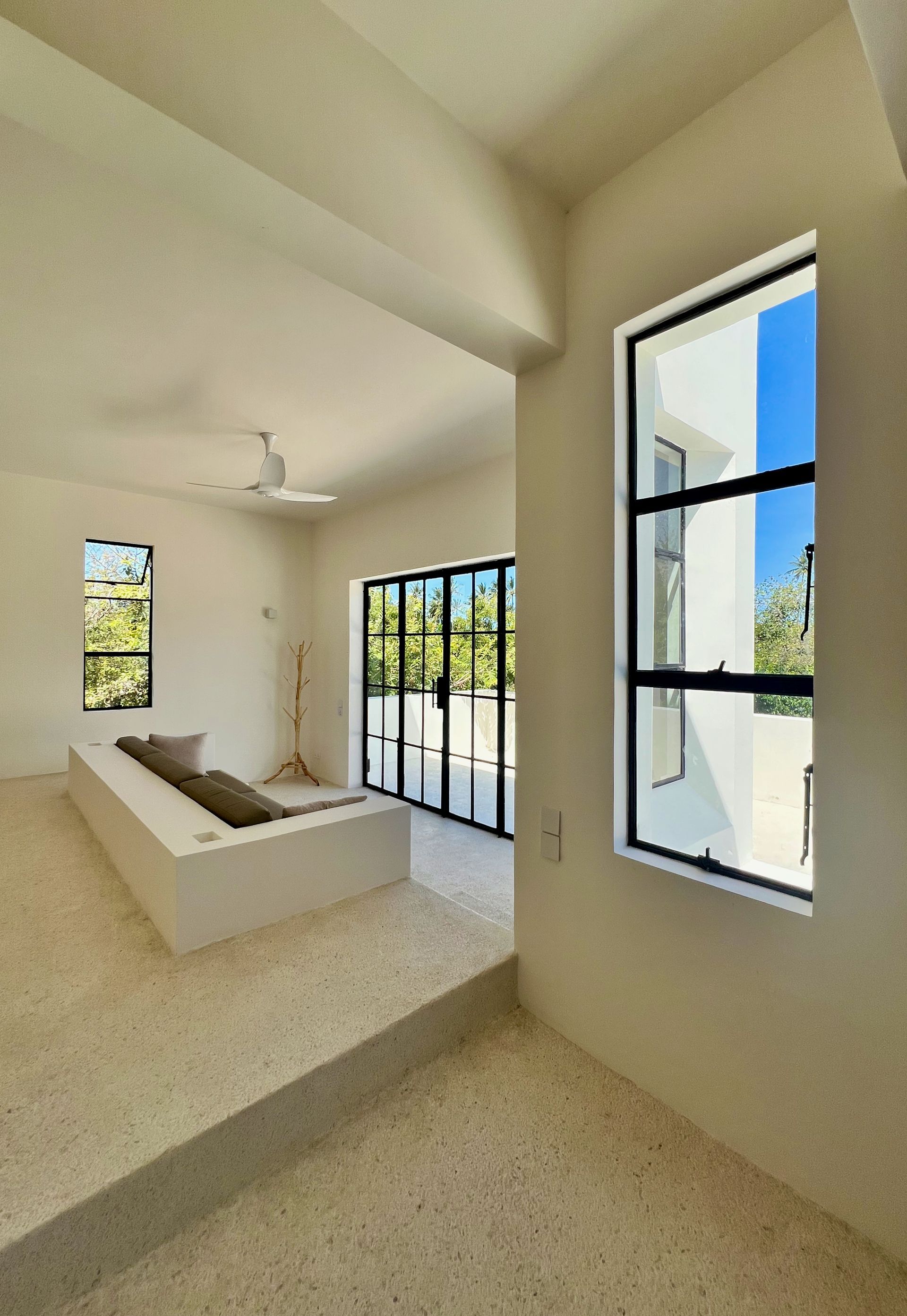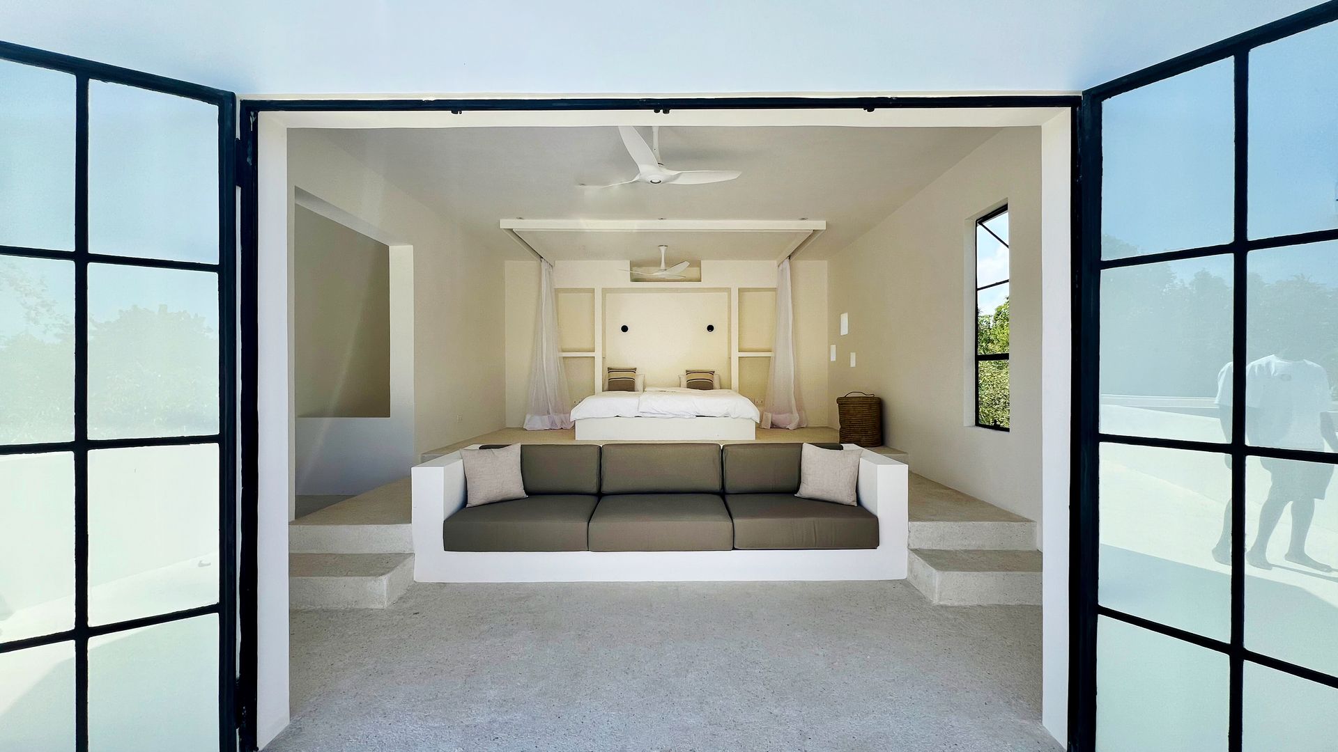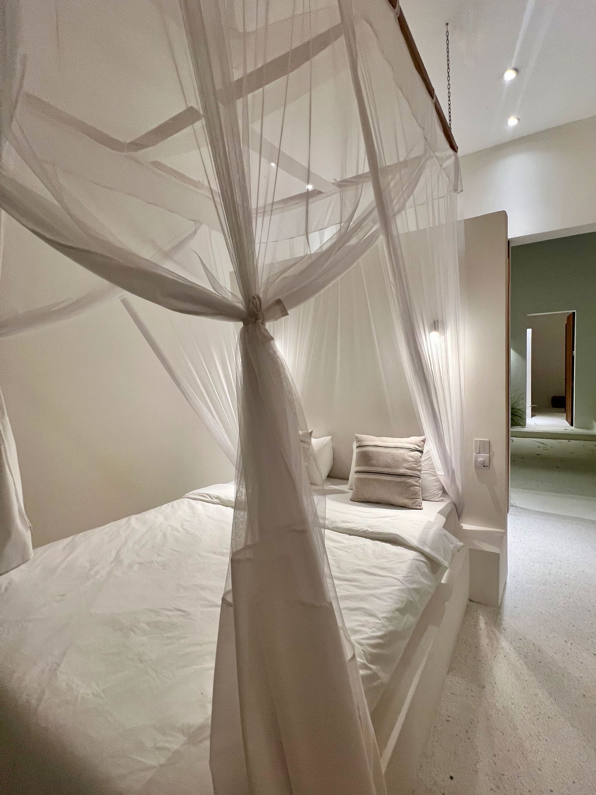 The house has 7 bedrooms. Each of the bedrooms has its own bathroom and its own private outdoor area with a terrace so that everyone has their own private retreat. There is a master bedroom and two guest bedrooms on the first floor and 4 further guest bedrooms on the ground floor.