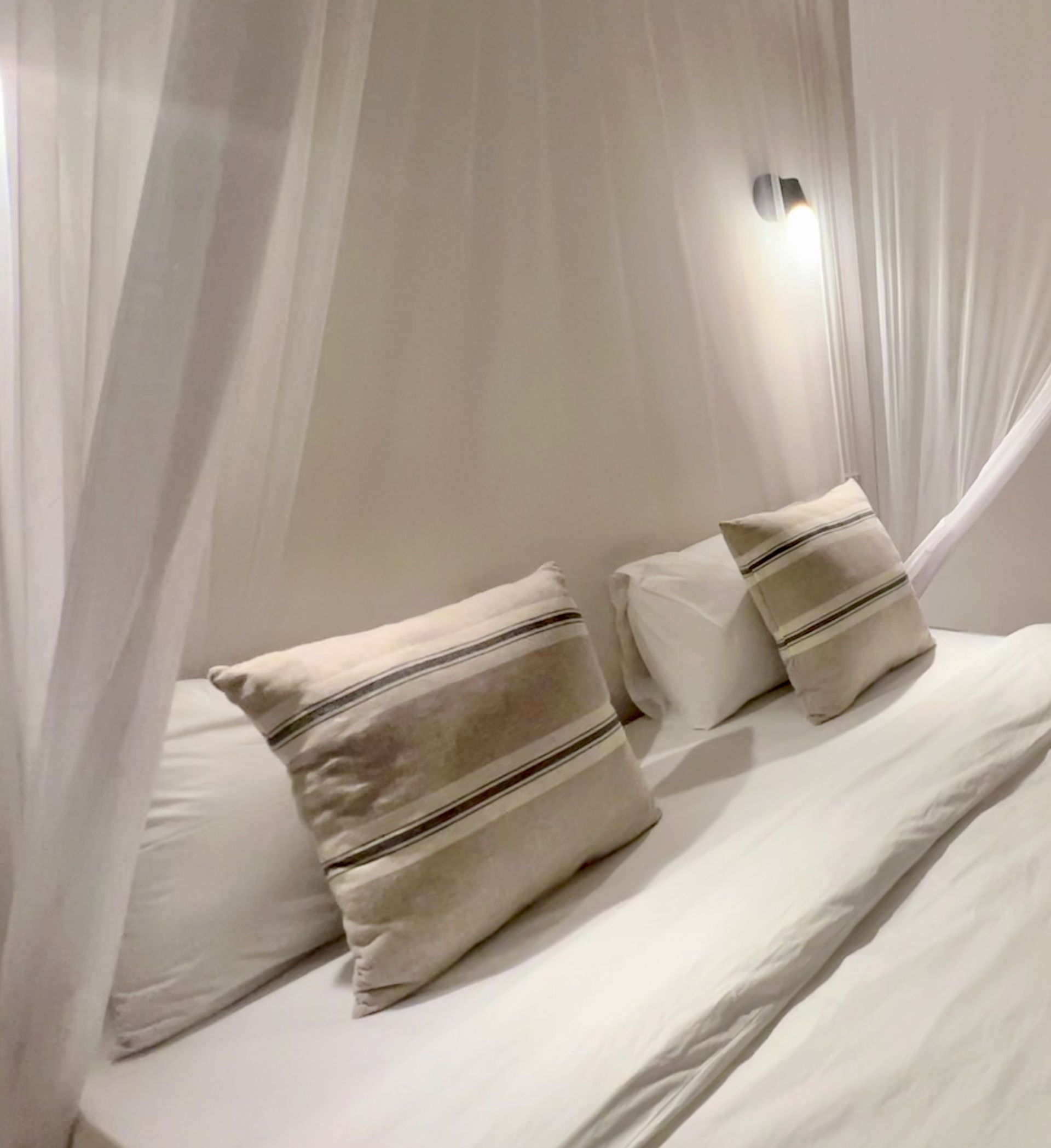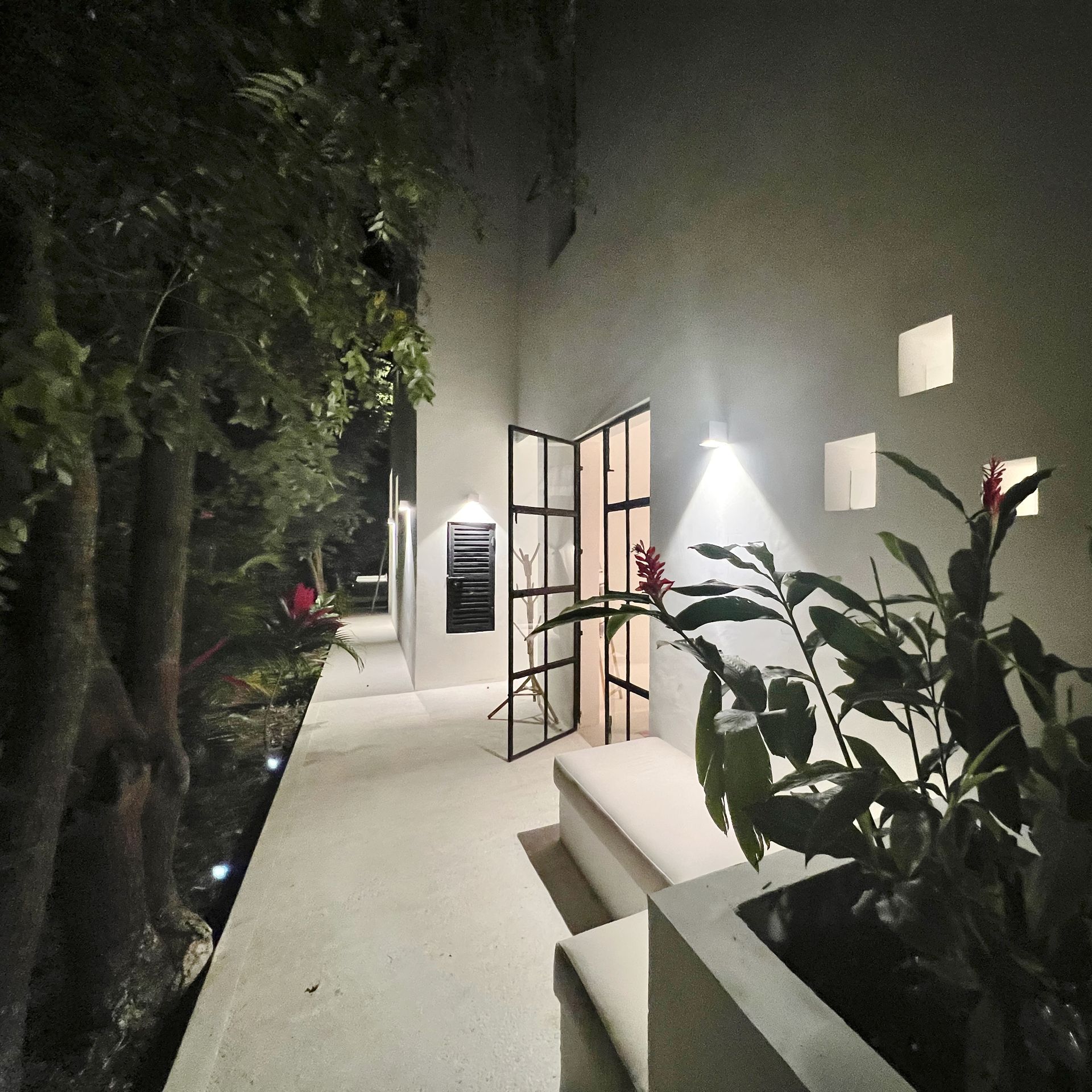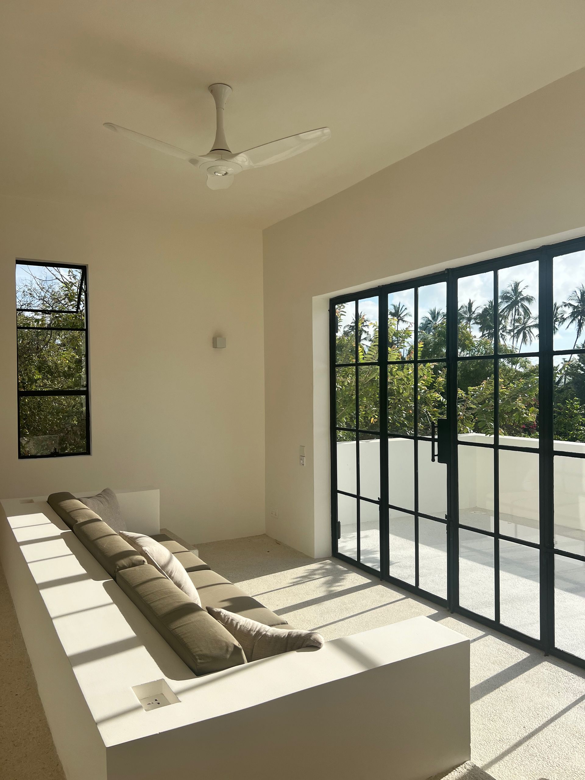The house has 7 bedrooms. Each of the bedrooms has its own bathroom and its own private outdoor area with a terrace so that everyone has their own private retreat. There is a master bedroom and two guest bedrooms on the first floor and 4 further guest bedrooms on the ground floor.