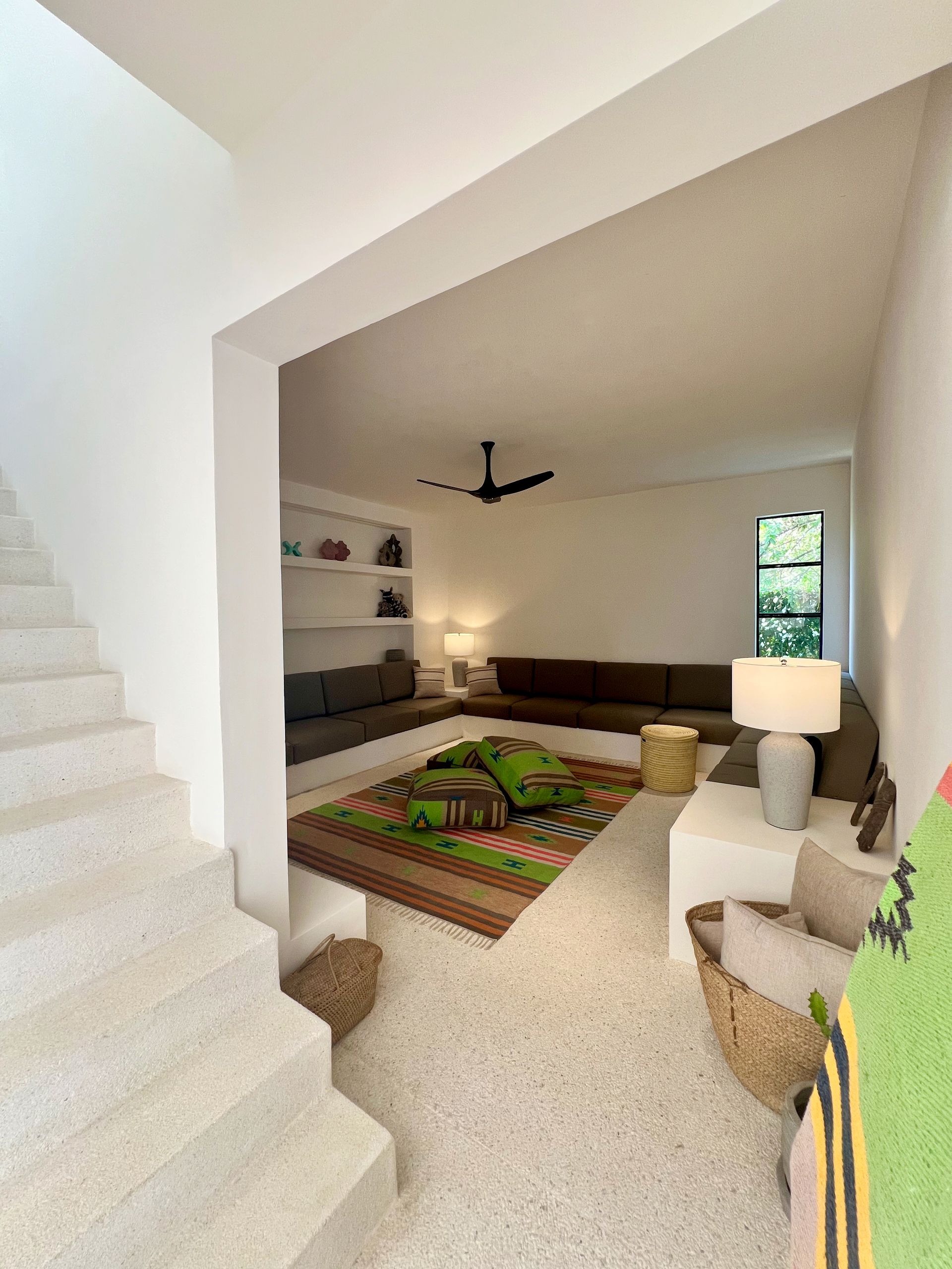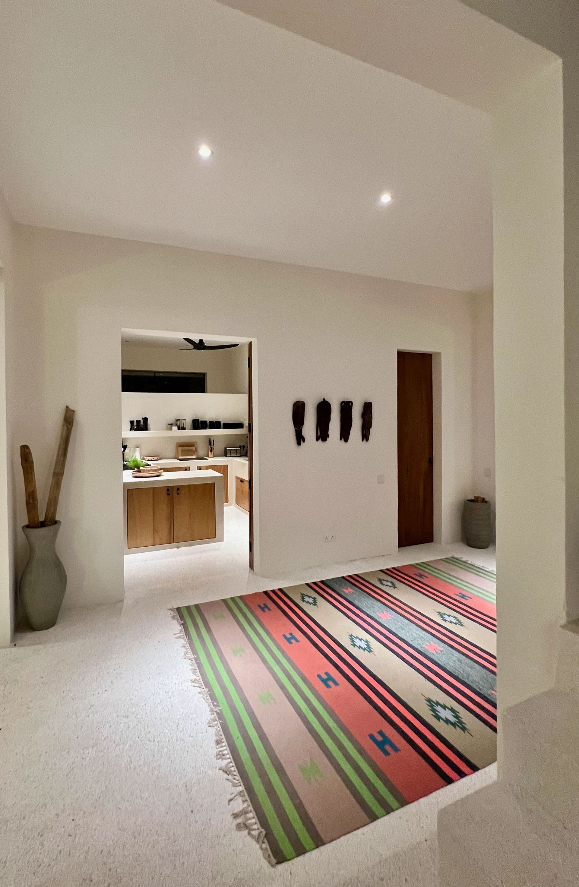The living room with large built-in sofas, big Moroccan-style cushions and a large TV invite you to enjoy a cosy movie night. When the sun disappears behind the horizon, it's also nice to watch a classic film with friends or family. Whether you're exploring the exciting beach during the day or letting yourself be carried away into the world of films in the evening, you'll find the ideal retreat for every adventure here.