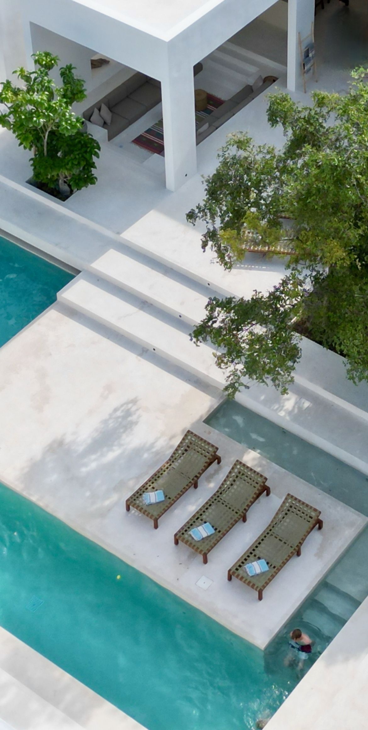 The large, tiered pool with an island in the middle and plenty of seating and sunbathing areas invites you to relax, swim and play. Even our youngest guests will have lots of fun splashing around in an area which is not separated from the main pool, but with very shallow water.