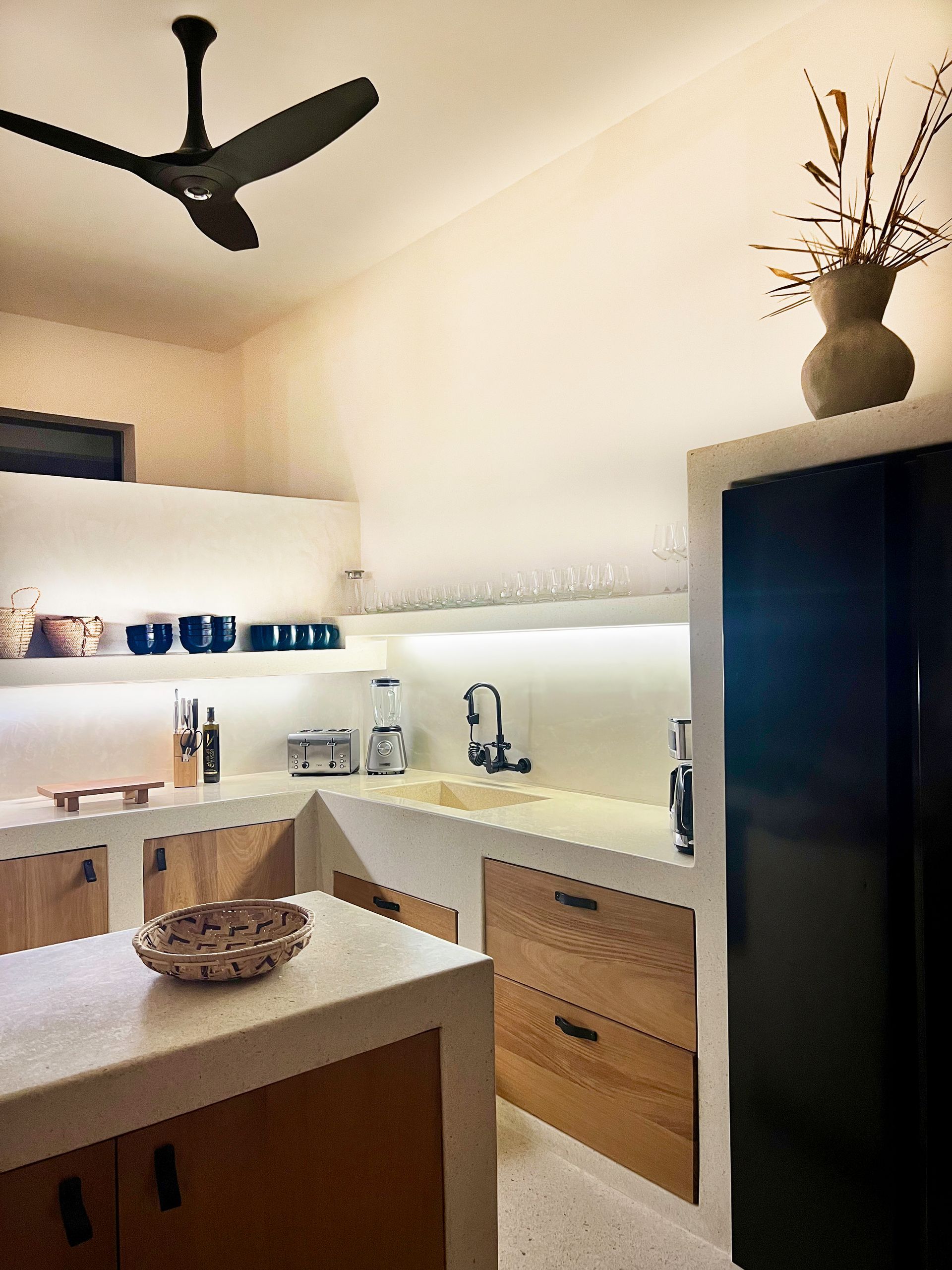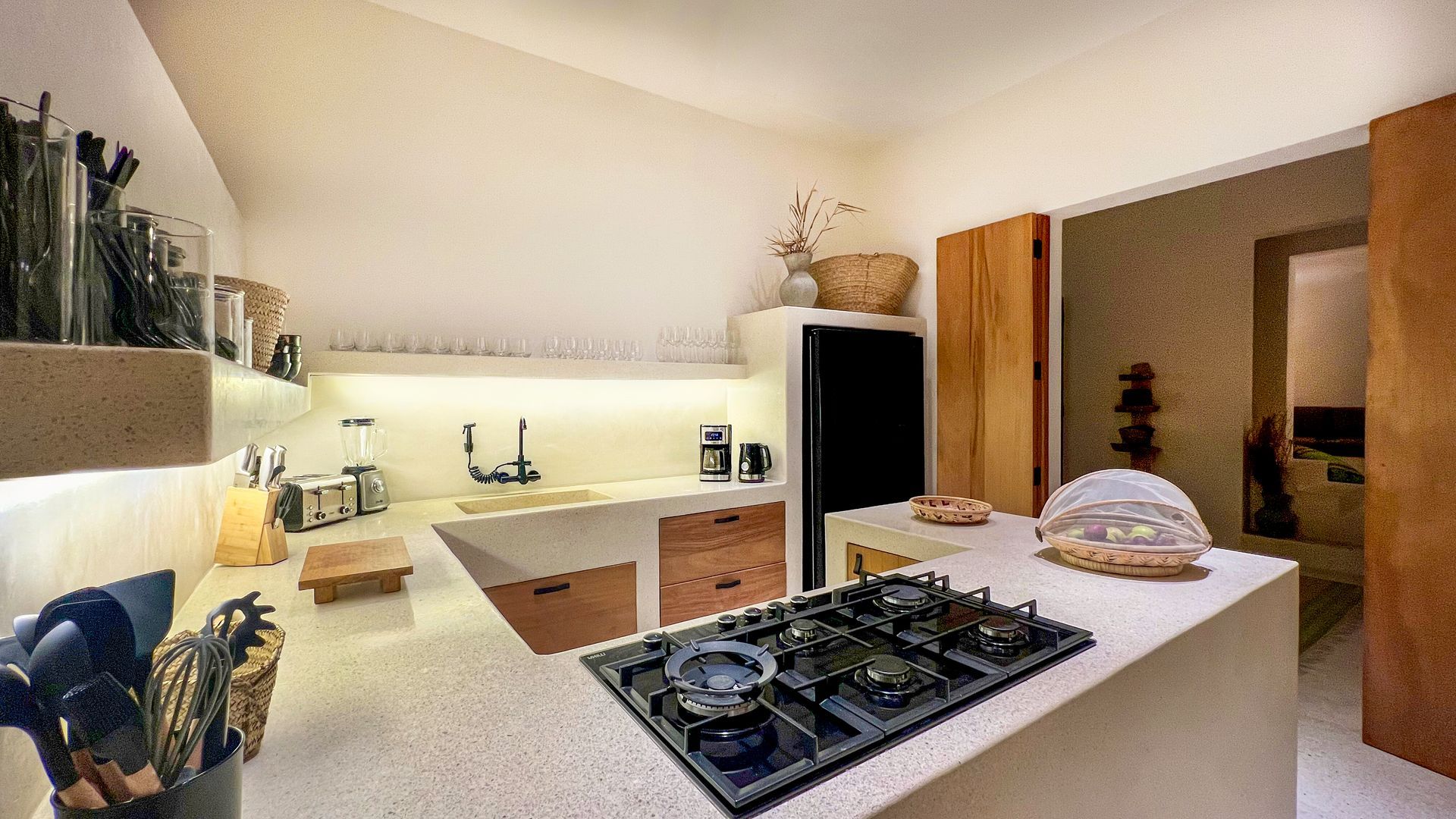 The kitchen really does have everything our chef needs to cook you the best dishes. The main kitchen has everything from an oven to a large fridge and freezer, gas hob and oven. In the prep kitchen there is a second oven, a dishwasher and another fridge. The kitchen is also connected to the bar outside. You just have to say what you want, our chef is waiting for you.
